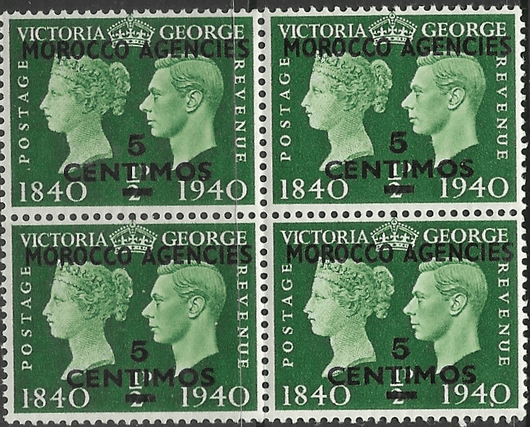 Morocco Agencies Spanish Currency Stamps 1940 Stamp Centenary SG 172 Fine Mint Block of 4