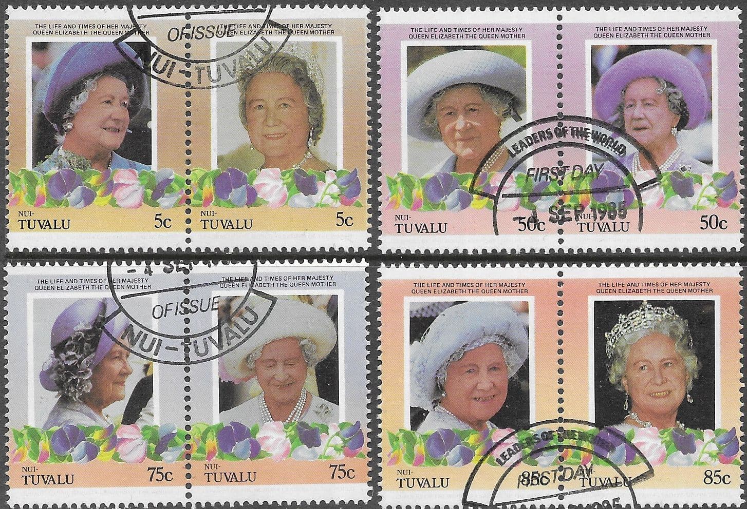 Tuvalu Nui Stamps 1985 Queen Mother Life and Times Set Fine Used